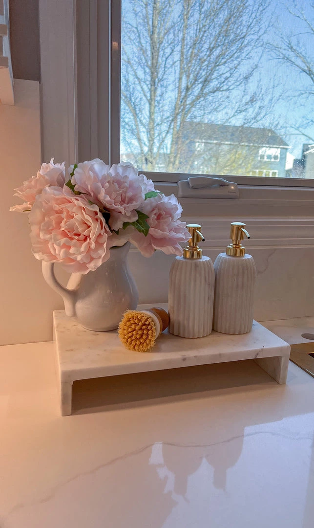 Description: This is a beautiful ceramic pitcher filled with faux pink peonies.