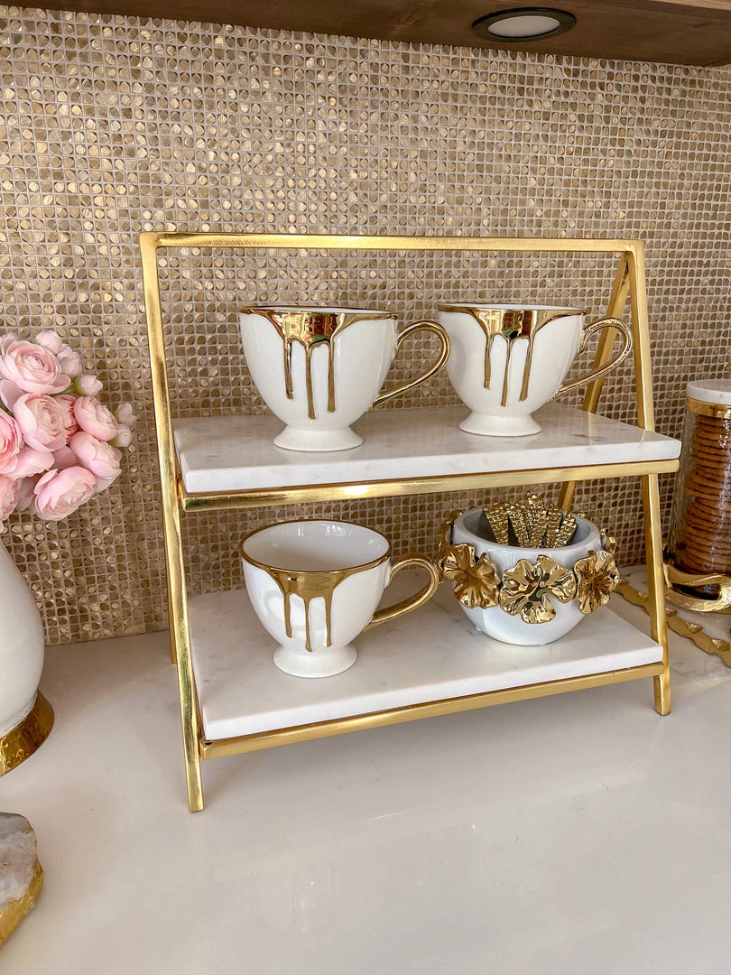 Inspire Me! Home Decor Round Marble Tray With Gold Edge And Metal Details