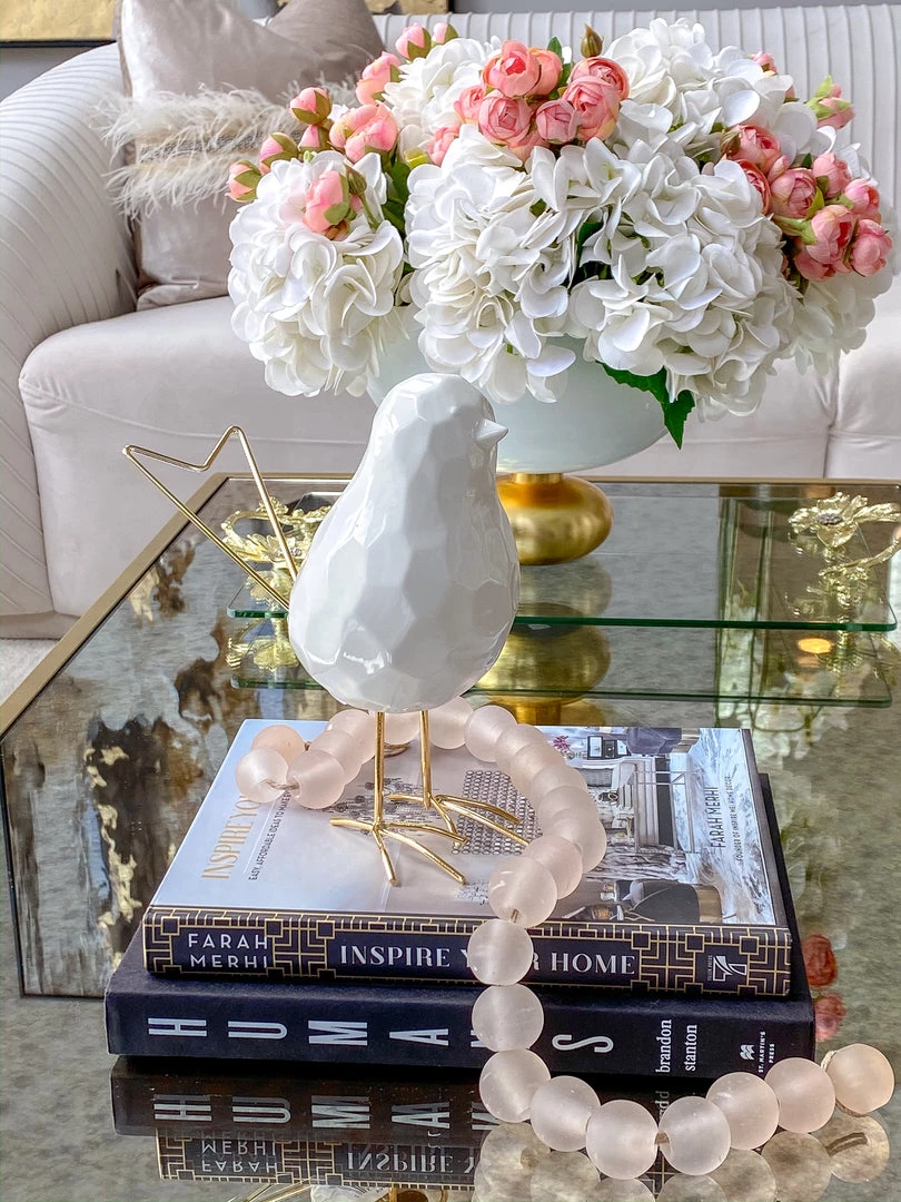 Description: This adorable bird will add a whimsical touch to your home decor. Featuring a white body and gold wired feet and tail, this is a fun and elegant design for your home!
