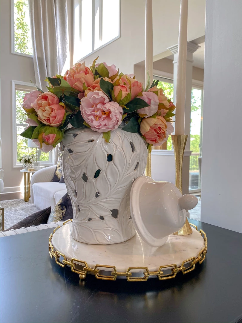 Descriptions: The design features a leaf texture with floral details, to give it a whimsical garden look! The white color will look good with any existing home decor, and combined with your favorite florals this will truly shine!