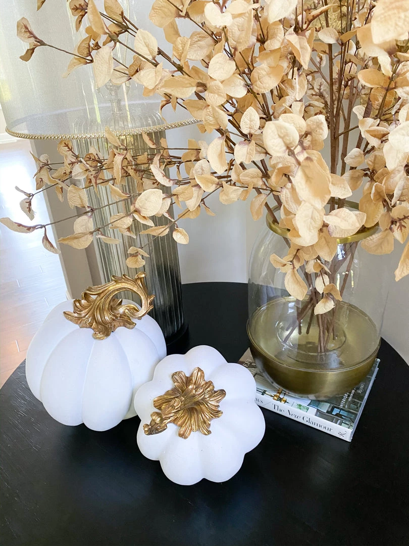 Description: These velvet decorative pumpkins are the definition of fall! We love styling them in our bowls or on our trays! The traditional orange color rings true with the fall season.